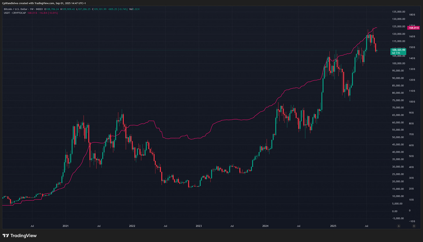 One of the most fascinating developments is that stablecoins have become part of global liquidity. At $180 billion and rising, stablecoins (using USDT as a representative example) are not yet systemically large, but they are systemically important. They provide an instantly liquid, dollar-denominated asset that can move at the speed of code, not at the speed of banking rails.